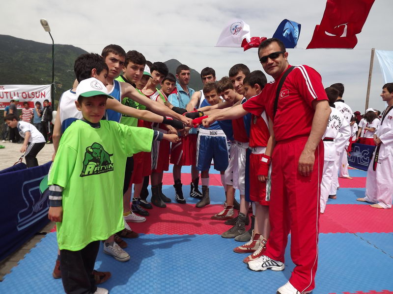 Ardından gençlik adına konuşma ve şiirlerin okunması, devamında Atatürk’ün Gençliğe Hitabesi, gençliğin Ata’ya cevabı öğrenciler ve sporcular tarafından seslendirildi. Gençlik Marşı’nın okunmasının ardından ödül töreni geçildi. 19 Mayıs Bayramı nedeniyle düzenlenen yarışmalarda dereceye giren öğrencilere ödülleri protokol üyeleri tarafından verildi. Arhavi Atatürkçü Düşünce Derneği üyeleri tarafından Arhavi ilçesinden yola çıkarılan Türk bayrağı ADD’li sporcular tarafında Vali Kalkan’a teslim edildi.