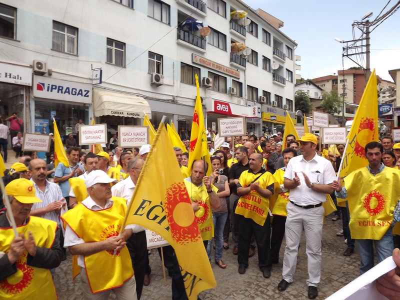 Açıklama sonunda : “Yaşasin emekçilerin birleşik mücadelesi!”, “Yaşasin grevli toplusözleşme mücadelemiz!” “Yaşasın insanca bir yaşam mücadelemiz!” sloganları atıldı.