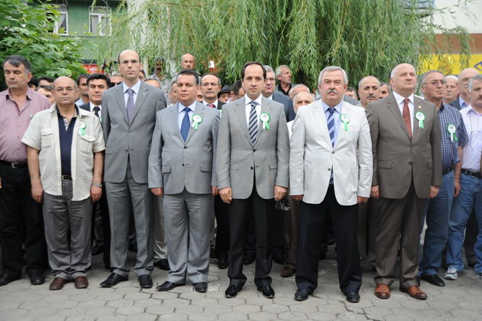 Hükümet Konaðý önündeki tören, Belediye Baþkaný Özgün´ün Atatürk Anýtý´na çelenk sunmasý, saygý duruþunda bulunulmasý ve Ýstiklal Marþý´nýn okunmasýyla baþladý.