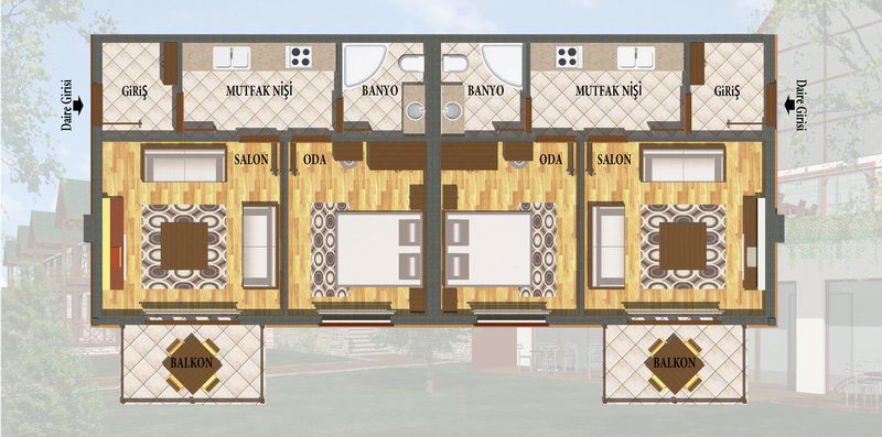 •Salon ve oda zeminleri 1. sınıf seramik yada laminant kaplama
