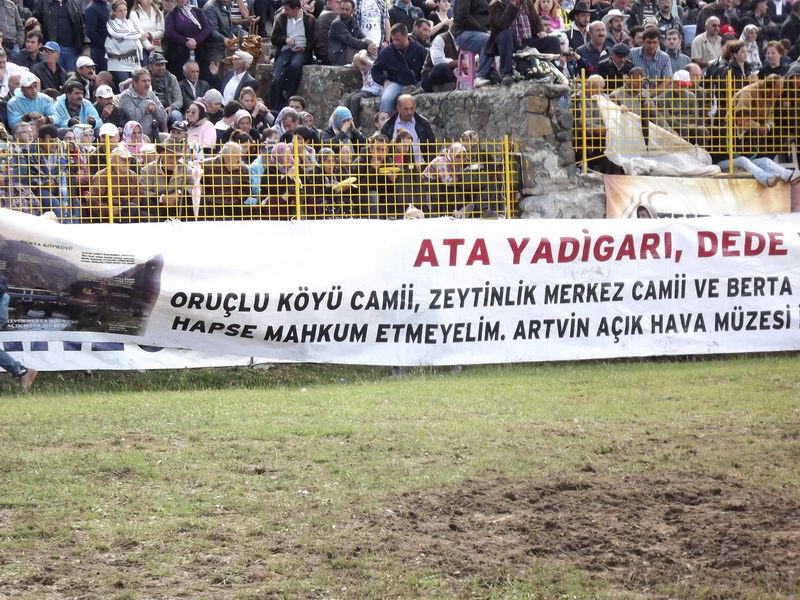 Tarihi eser kurtarma gönüllüsü olarak isim yapan Zeki Kurt, Deriner Baraj Gölü altında kalacak tarihi eserler için verdiği mücadelede zor günler geçiriyor. Zamanla yarışan Zeki Kurt, 32. Kafkasör Kültür, Sanat ve Turizm Festivali’nde pankart açarak yetkililerin ve halkın dikkatini bir kez daha su altında kalacak tarihi eserlere çekti. Zeki Kurt, 15 metre uzunluğunda, üstünde” Ata Yadigarı Dede Mirası; Oruçlu Köyü Camii, Zeytinlik Merkez Camii, Berta Köprüsü’nü Müebbet Hapse Mahkum Etmeyelim, Artvin Açık Hava Müzesi ile Ekonomiye Kazandıralım.” yazan pankartı açarak arena etrafında dolaştırdı. Vatandaşlardan alkış aldı.